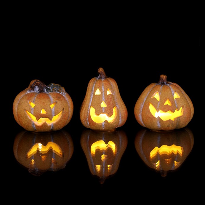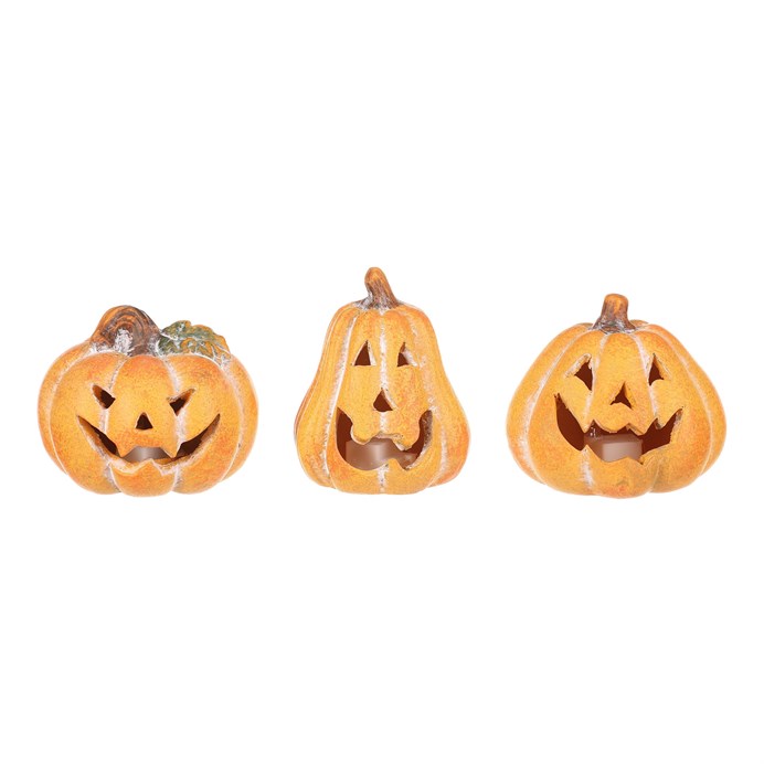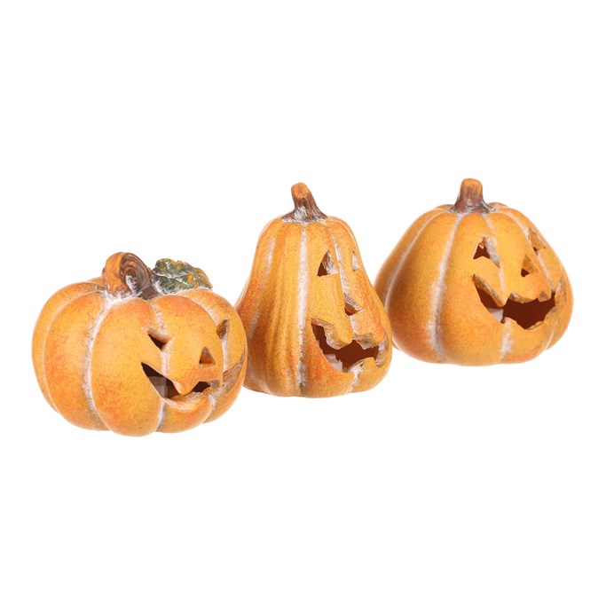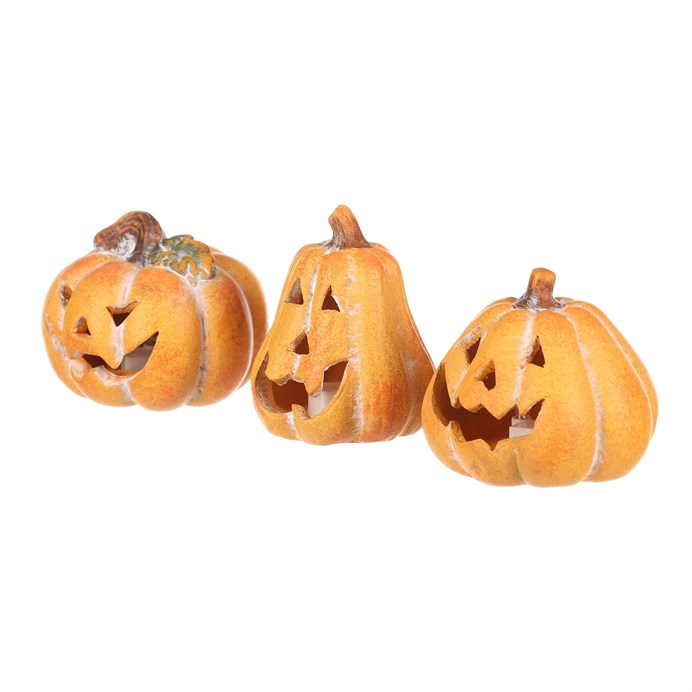 Dotaz na produktVytvořte si jedinečnou podzimní atmosféru s naším mixem malých keramických dýní s vyřezanými obličeji. Každá z nich má vyřezaný obličej, který připomíná veselého strašáka, a je vyrobena z keramiky, což zajišťuje jejich trvanlivost. Mají dutý vnitřek, kde se nachází LED osvětlení, což za dlouhých podzimních večerů bude mít neodolatelný světelný efekt. Tři druhy dýní se liší tvarem, ale všechny jsou ve stejném, žlutém odstínu, což zajistí harmonický vzhled vaší dekorace. Tyto malé keramické tykve jsou skvělou volbou pro ozdobení jak venkovních prostor, tak i interiérů vašeho domova. Užijte si naplno atmosféru barevného podzimu, případně děsivého Halloweenu, s našimi keramickými dýněmi s osvětlením.