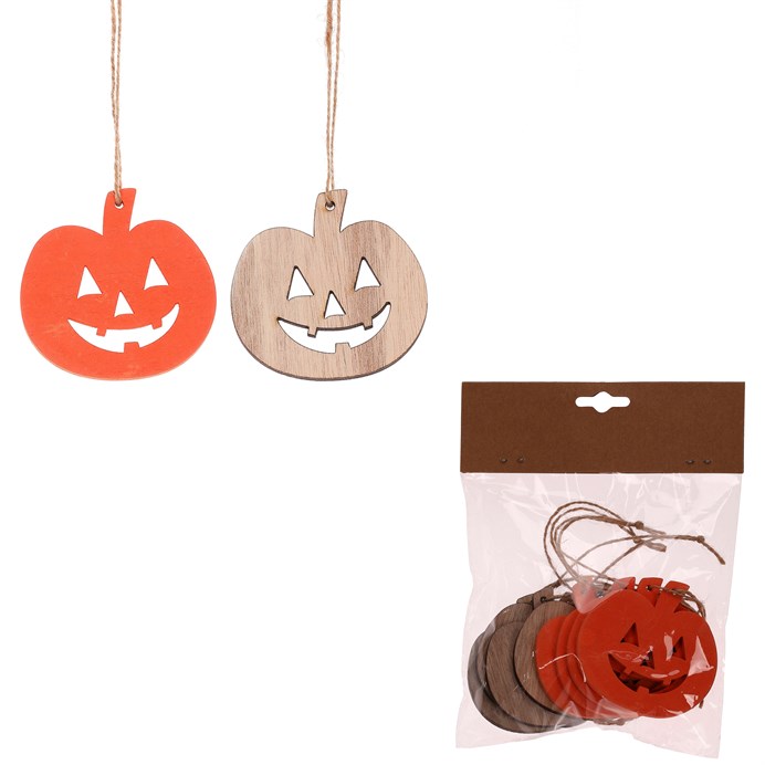 Dotaz na produktNechte naplno proniknout do svých domovů, či jiných oblíbených prostor, tu pravou podzimní atmosféru, i díky těmto závěsným dřevěným ozdobám ve tvaru dýní s vyřezanými obličeji. Balené jsou po 8 kusech v sáčku, přičemž zde najdete ozdoby oranžové nebo v přírodním odstínu dřeva. Je už jen na fantazii a dekorativních schopnostech každého z vás, jak s těmito ozdobami naloží. Každopádně jsou výborným základem pro tvorbu barevných podzimních aranží, dotvářených vlastníma rukama.