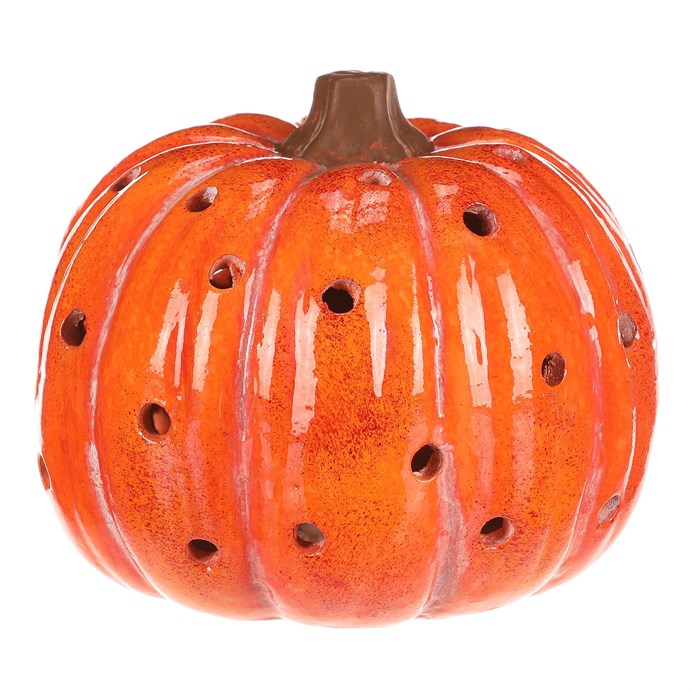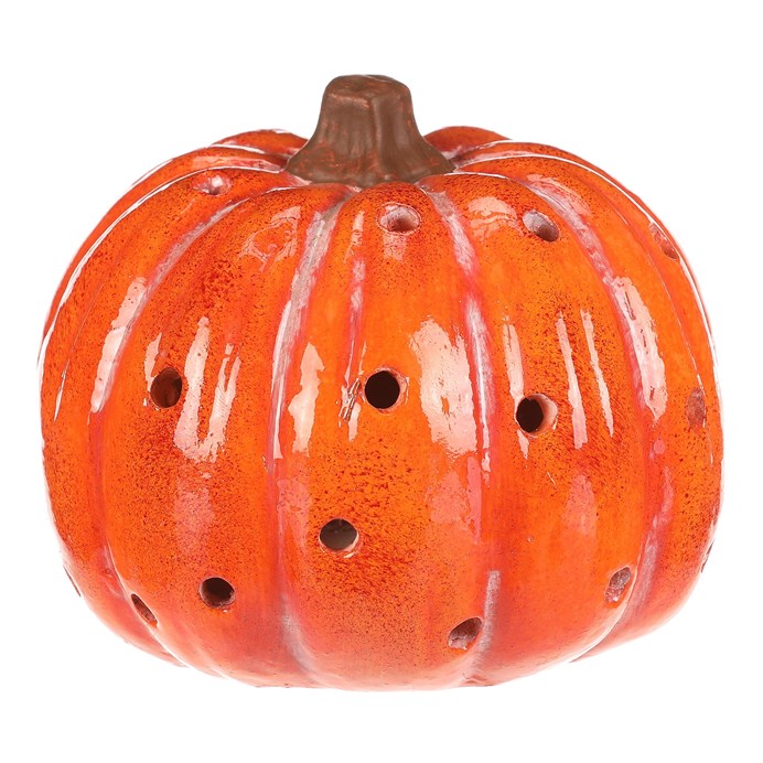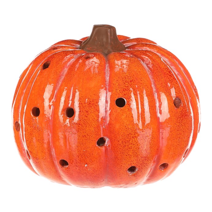 Dotaz na produktOranžová dýně z keramiky s LED osvětlením uvnitř navodí tu správnou podzimní atmosféru. Po celém obvodu se nachází kulaté otvory, kterými bude světlo zevnitř krásně vycházet ven a vytvářet neodolatelný světlený efekt.