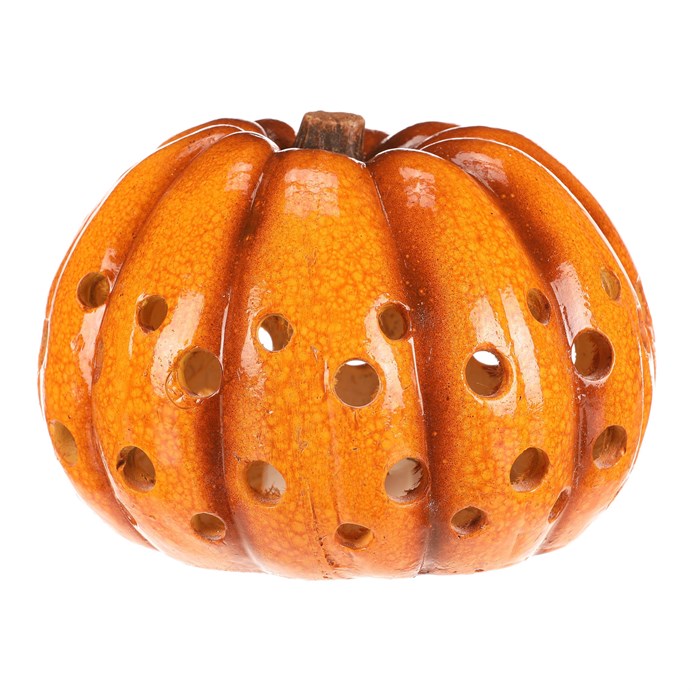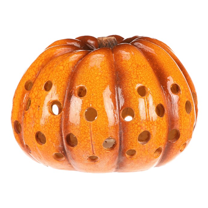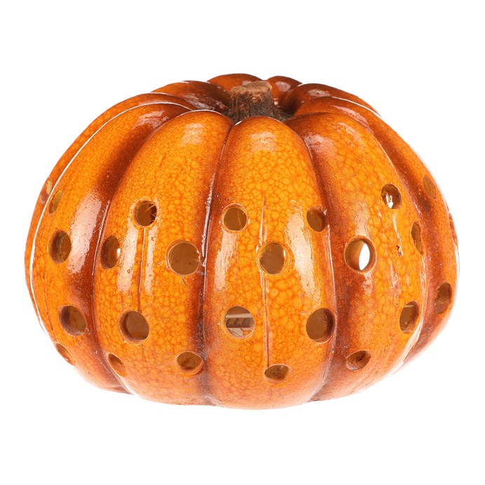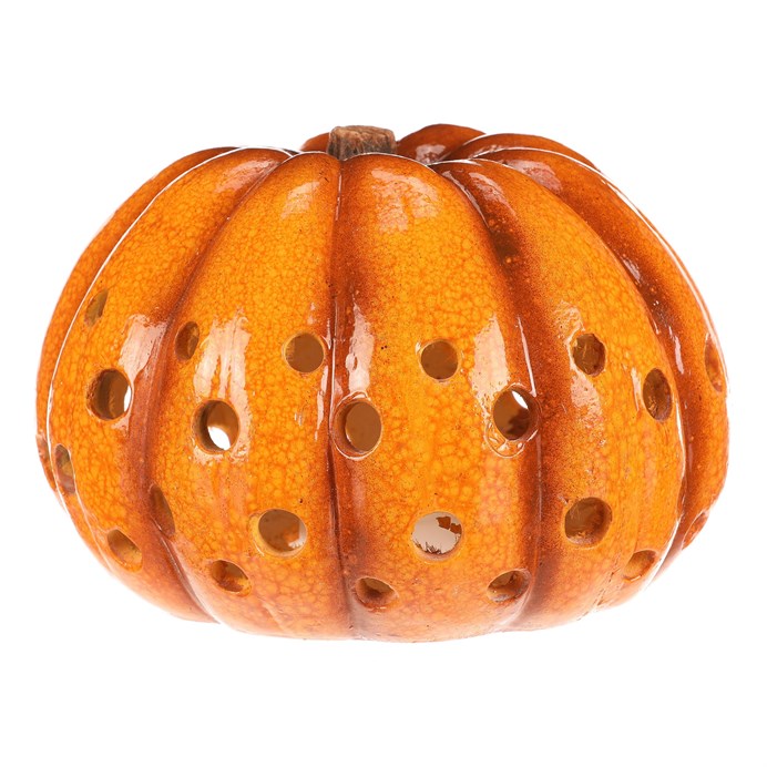 Dotaz na produkt Na splátky ještě dnesŽluto-oranžová dýně z keramiky s LED osvětlením uvnitř navodí tu správnou podzimní atmosféru. Po celém obvodu jsou různě velké kulaté otvory, kterými bude světlo zevnitř krásně vycházet ven a vytvářet neodolatelný světlený efekt.