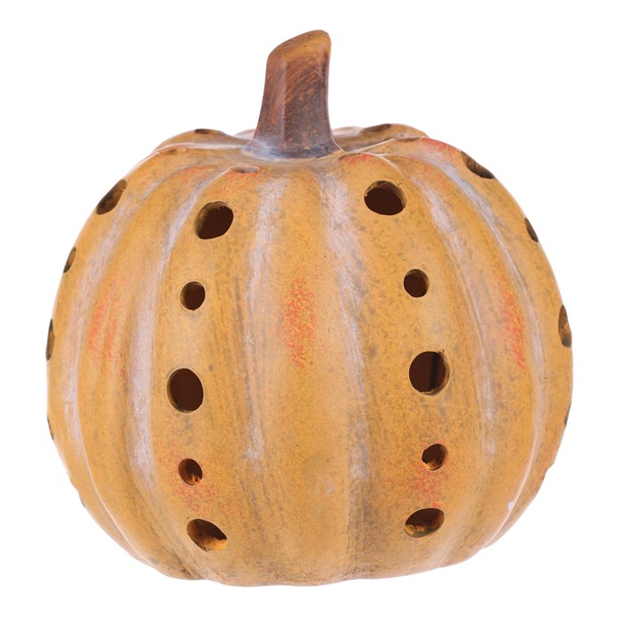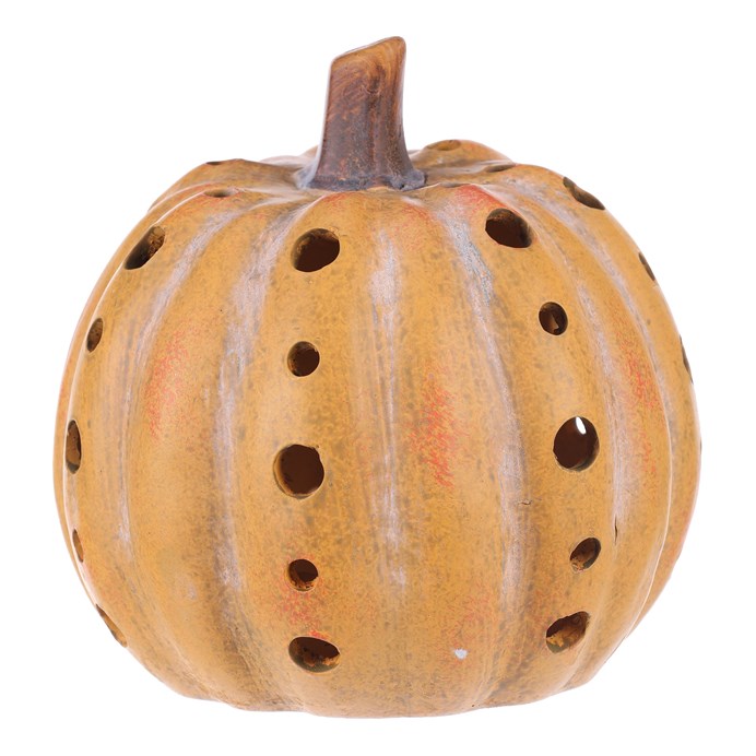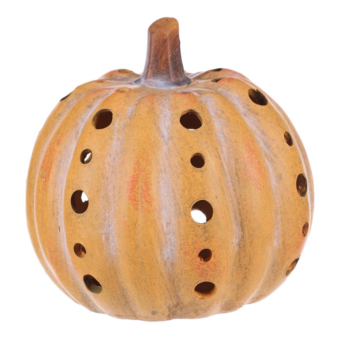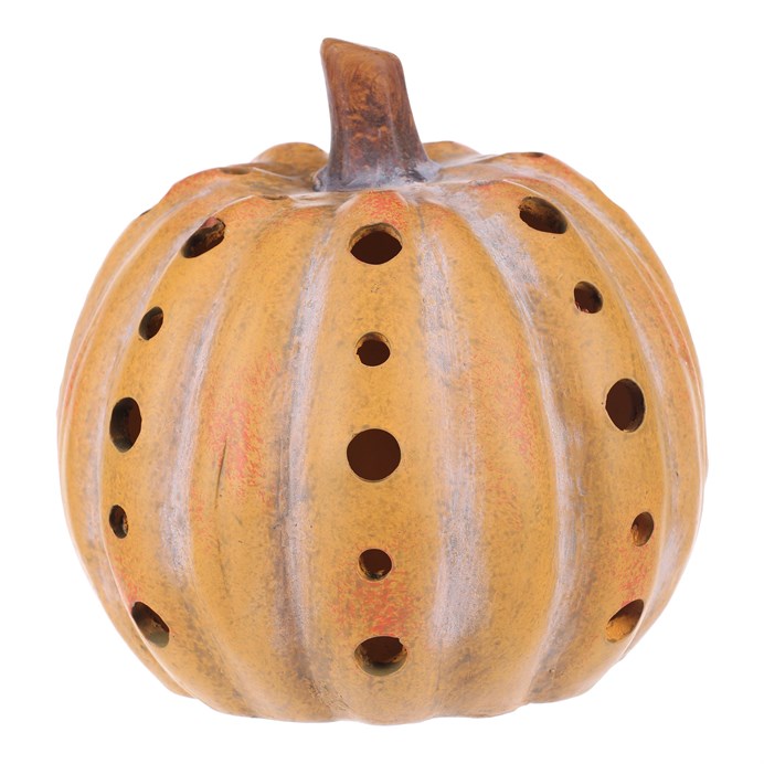 Dotaz na produktVytvořte si dokonalé podzimní prostředí se žlutou dýní, která má v sobě kulaté otvory, soustředěné v jednotlivých pruzích po jejím obvodu. Tato keramická varianta oblíbeného tykvovitého plodu, dodá vybranému prostoru nádherný podzimní dotek, který vydrží celou sezónu i mnoho dalších.