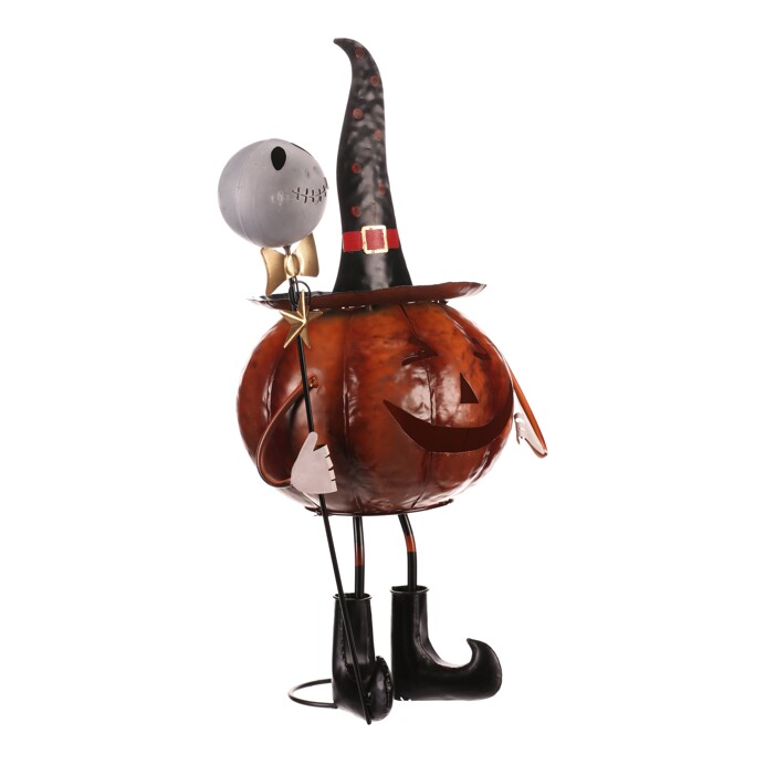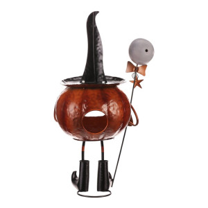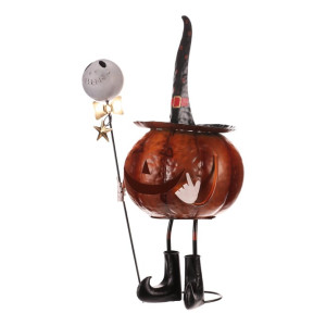 Dotaz na produkt Na splátky ještě dnesOranžová kovová dýně s kloboukem a hůlkou zakončenou bubákem, sice vypadá strašidelně, ale její veselý výraz napoví, že to s tou hrůzou nebude tak zlé. Ideální dekorace na Halloween i podzimní večery, která potěší každého, kdo má rád trochu tajemna s úsměvem.
