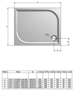 Šířka vaničky (mm): 900