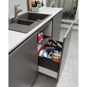 Dotaz na produkt Na splátky ještě dnesMin. montážní prostor 564 × 378 × 343 mm. Barva černá. 3 Koše (3× 14,5 l). Výška košů 324 mm. Police nad košem v ceně koše. Koš se vkládá do zásuvky s plnovýsuvem, která je osazena podélným relingem nebo vysokou bočnicí. Doporučené plnovýsuvy BLUM, GRASS, HETTICH. Systém EASYSORT umožňuje pohodlné třídění odpadu. Koše pro třídění odpadu jsou vyrobeny z recyklovaného antiseptického materiálu, který snižuje výskyt bakterií až o 99%.