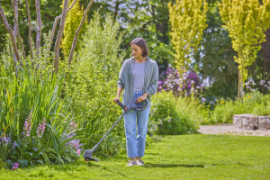 Lehké a ovladatelné akumulátorové nářadí, které lze snadno a pohodlně přenášet i na velkých zahradách. Navzdory své nízké hmotnosti disponuje dostatkem vyžínacího výkonu na to, aby zvládl trávníky všech tvarů a velikostí, nastavitelná ochrana rostlin udrží vaše květiny, stromy a keře v bezpečí.
