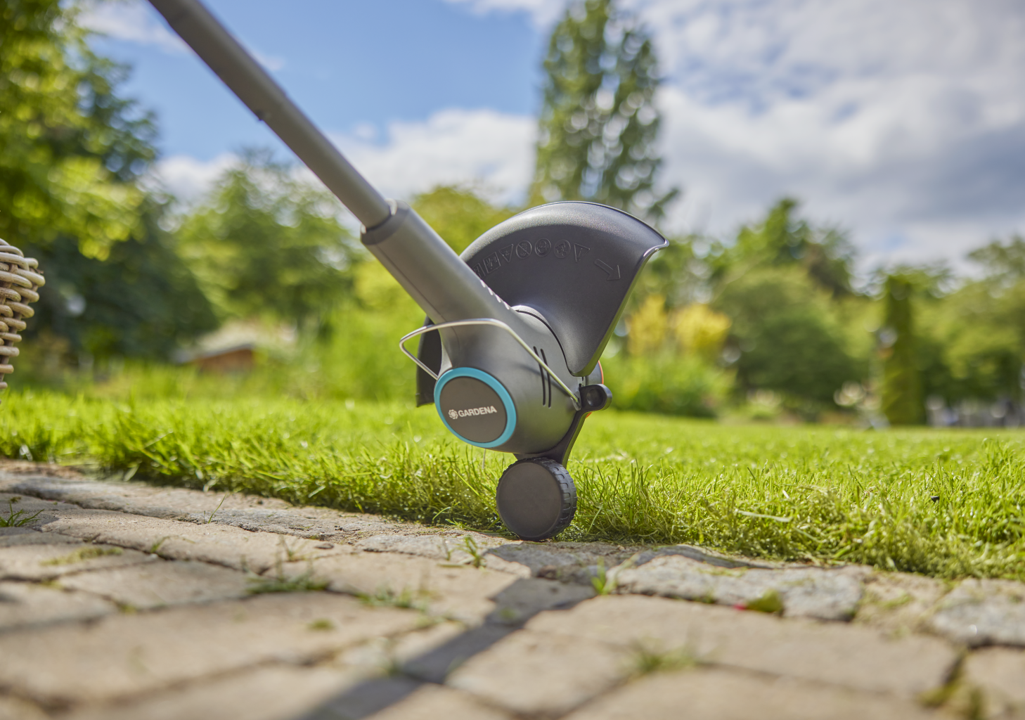 Skvělý střih může být narušen nerovnými hranami. EasyTrim je vybaven lemovacím kolečkem, které se odvaluje po zemi pro čistý a rovný okraj. Lemovací kolečko lze také rolovat podél plotů a zdí, aby pomohlo chránit strunu před zlomením.