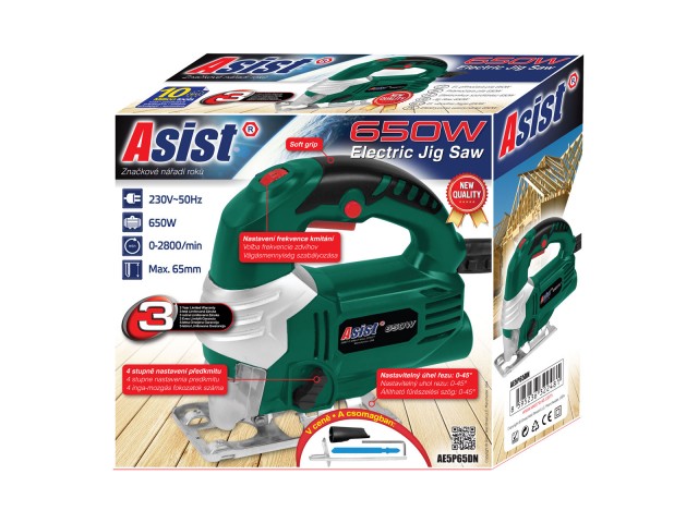 Chcete řezat silnější materiály nebo tvrdé dřevo? Pak jistě oceníte elektrickou přímočarou pilu ASIST AE5P65DN. Tato elektrická 650 Wattová pila je totiž vybavena předkmitem nastavitelným ve čtyřech stupních. Vytváří takzvaný orbitální pohyb, díky kterému plátek stíhá vyhazovat piliny, které zůstávají mezi zuby, což usnadňuje jak snadnost řezání, tak zaručuje kvalitní řez. Má také plynulou regulaci kmitání 0 až 2800 kmitů za minutu a nastavitelný úhel řezu v rozsahu od 0 do 45°. Jistě oceníte i vývod na odsávaní prachu pro čisté pracovní prostředí či aretaci spínače pro větší pohodlí.
