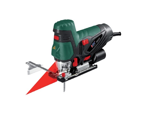 Elektrická přímočará pila s výkone 850W a s nastavitelným úhlem řezání a předkmitem. Může opracovávat ocel, plasty nebo i dřevěný materiál, podle použitého pilového listu. Regulace frekvence kmitání.Šikmý řez 0 - 45°. Železná základna.