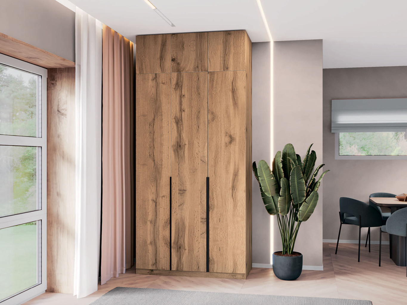 nabízí praktické řešení úložného prostoru s důrazem na pořádek, přehlednost a moderní vzhled.
