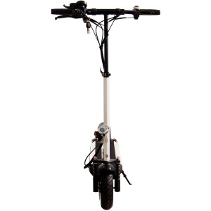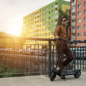 Na pečlivém zpracování, které bylo vyšperkováno do detailu, se podílí také pevné pneumatiky s průměrem 10" (25,4 cm), jež mají skvělou přilnavost a výborně tlumí nepříjemné vibrace při jízdě. Koloběžka navíc disponuje kvalitním předním a zadním odpružením, které zaručuje pohodlnou a hladkou jízdu. Kromě toho jsou kola chráněna blatníky, což přispívá k ochraně před nečistotami z důvodu nepříznivého počasí. Odolnosti napomáhá i samotná hliníková konstrukce s výškově nastavitelnými řídítky. Koloběžka bude vhodná pro jezdce s postavouod 150 do 210 cm. Na 53 cm dlouhém nášlapu se můžete pohodlně svést s chodidly za sebou či vedle sebe.