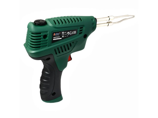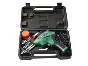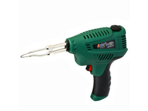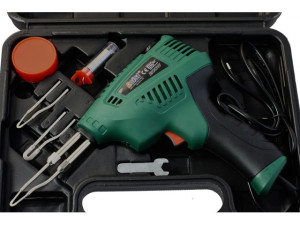 Tato pistole disponuje třemi regulovatelnými stupni intenzity teploty. Stupeň A: 70-200°C řezání plastů, stupeň B: 200-350°C běžné pájení a stupeň C: 350-500°C vypalování do dřeva. Těchto teplot dosáhne velmi rychle a protože má soft grip rukojeť, velmi pohodlně se sní pracuje. Dále je vybavena LED osvětlením pracovního prostoru a má 1,5 metrů dlouhý přívodní kabel.