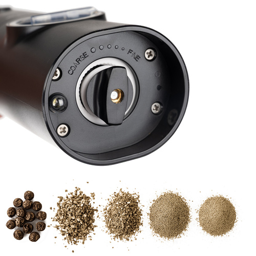 - nastavitelné mletí - upravte si hustotu mletí podle svého jídla, od mořské soli po kajenský pepř