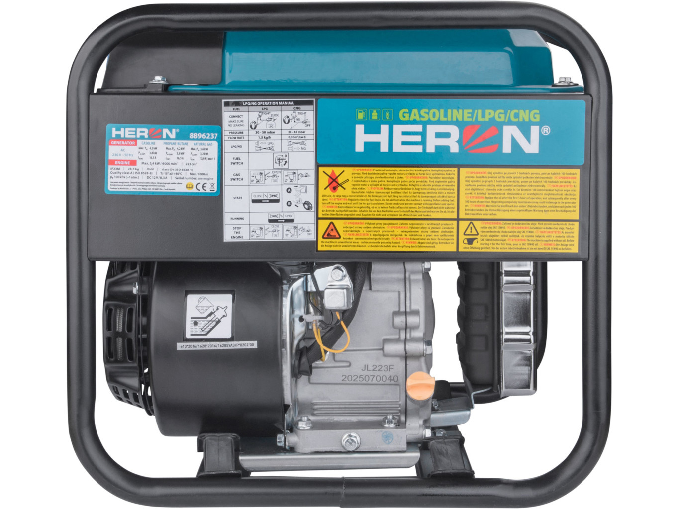 Dotaz na produkt Na splátky ještě dnesElektrocentrála HERON je moderní zdroj elektrické energie určený všem, kteří potřebují spolehlivý, úsporný a přenosný výkon. Díky digitální invertorové technologii poskytuje čisté a stabilní napětí vhodné i pro citlivou elektroniku, přičemž zachovává nízkou hmotnost a kompaktní rozměry. Oproti běžným modelům s AVR regulací nabízí vyšší účinnost a efektivnější provoz, což z ní činí ideální zařízení pro stavebníky, servisní techniky i rekreační využití. Srdcem centrály je čtyřtaktní motor o výkonu 7,5HP, který umožňuje dlouhodobý elektrický výkon 3,8kW a krátkodobě až 4,2kW. Tento výkon postačí pro napájení většiny nářadí, čerpadel či topných spotřebičů. Výhodou je také možnost provozu na tři druhy paliva – benzín, LPG a CNG. Při provozu na benzín a LPG je výkon shodný, zatímco při použití CNG je maximální výkon 3,6kW a provozní výkon 3,2kW. Díky tomu lze zařízení ekonomicky využívat i v místech s omezeným přístupem k tradičním pohonným hmotám, například při dlouhodobém provozu. Dvojice zásuvek 230V/16A umožňuje současné použití více zařízení a 12V výstup s autozásuvkou poskytuje napájení drobných spotřebičů s odběrem do 8,3A – například USB nabíječek, chladicích boxů, vysavačů apod. Přiložené kabely zároveň umožňují nouzové nabíjení autobaterií. Digitální panel zobrazuje celkový i aktuální čas provozu, výstupní napětí a frekvenci. Velkou výhodou tohoto modelu je kompaktnost: invertorová technologie umožnila snížit hmotnost oproti běžným AVR centrálám téměř o 40% na 28 kg a zároveň zmenšila objem o třetinu. Díky tomu se zařízení snadno přenáší a nevyžaduje velký prostor pro skladování. Robustní rám zajišťuje stabilitu a bezpečnou manipulaci i v náročném terénu. Elektronická regulace výkonu automaticky přizpůsobuje otáčky motoru aktuálnímu zatížení, čímž snižuje spotřebu. HERON tak představuje ideální volbu pro ty, kdo hledají tišší, lehčí a efektivnější elektrocentrálu s výkonem téměř 4kW v moderním přenosném provedení. Nabízí kombinaci vysokého výkonu, mobility a spolehlivosti při zachování příznivé ceny.
