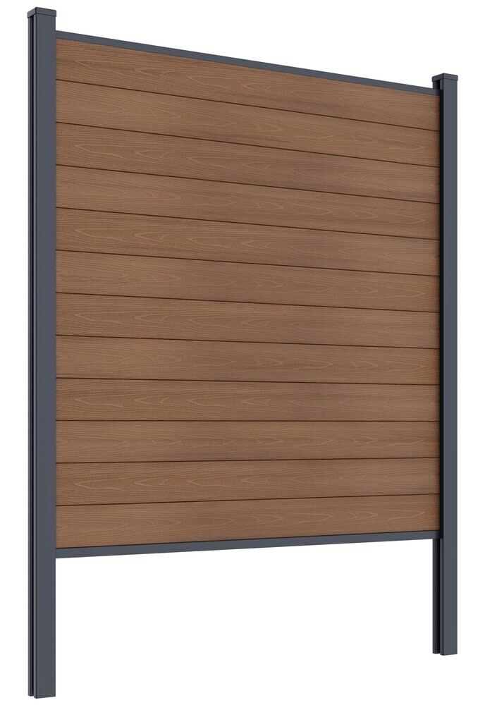 Dotaz na produkt Na splátky ještě dnesLuxusní plotový panel ELEMENT z kvalitního WPC materiálu spojuje elegantní vzhled a vysokou odolnost. Panel tvoří 12 pevných plotových latí doplněných o horní a spodní hliníkovou ukončovací lištu. Moderní teaková barva dodá vaší zahradě či pozemku nadčasový styl, který si zachová sytost a krásu po mnoho let. HLAVNÍ VÝHODY: Vysoce pevný a stabilní materiál Jednoduché a rychlé sestavení – díky systému pero-drážkabez těžkého přenášení při montáži. Bezúdržbové provedení – žádné natírání ani lakování Stálobarevnost a odolnost vůči povětrnostním vlivům Na plotové panely z WPC materiálu garantujeme pětiletou záruku. Složení panelů je - 57,5 % dřevěná složka, 26,9 % plastová složka a 15,6 % ostatní materiály. Panel lze snadno kombinovat se sloupky k přišroubování do povrchu nebo sloupky k zabetonování. Díky kompatibilitě je možné tvořit rovné úseky i rohové spoje přesně podle potřeb vašeho projektu. MATERIÁL WPC (Wood Plastic Composite) Kompozitní směs dřeva a plastu, která kombinuje vzhled a částečně i vlastnosti dřeva s odolností a nízkou údržbou plastu. SLOŽENÍ: Dřevní složka (obvykle jemně mletá dřevní moučka) dodává přírodní vzhled, příjemný povrch a tuhost. Polymerová složka (nejčastěji polyethylen, polypropylen nebo PVC) zajišťuje odolnost proti vlhkosti, plísním a hnilobě. Přísady (UV stabilizátory, barviva, pojiva) prodlužují životnost a zlepšují vzhled. HLAVNÍ VLASTNOSTI WPC: Odolnost vůči vlhkosti a povětrnostním vlivům – nehnije, nepraská, nedeformuje se. Dlouhá životnost i bez povrchové úpravy. Snadná údržba – stačí opláchnout vodou, není nutné natírat. Protiskluzový povrch, příjemný na dotek.