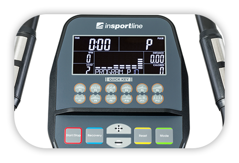 Na přehledném displeji se zobrazuje čas, rychlost, vzdálenost, kalorie, tep, otáčky za minutu, výkon a zvolená zátěž, což vám umožní mít trénink vždy pod kontrolou.