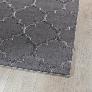 Koberec Elsher Grey je vyroben ze směsi polyesteru a polypropylenu s jutovou spodní stranou. Toto řešení zajišťuje jeho vysokou odolnost, odolnost proti tření a oděru. Jeho syntetická vlákna jsou navíc odolná vůči napadení škodlivými mikroorganismy a mají antistatické vlastnosti (nepřitahují prach). Alergici jej proto mohou bez obav používat. Výrobek má povrch zdobený orientálním marockým motivem jetele a stříbrošedým zbarvením. Proto se bude hodit do moderních designů.