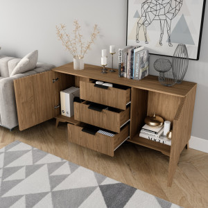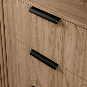Dotaz na produkt Na splátky ještě dnesKomoda Entsian je perfektní kus nábytku, který kombinuje funkčnost s elegancí a vytváří jedinečnou atmosféru ve vašem interiéru. S hloubkou 40 cm, šířkou 150 cm a výškou 72 cm nabízí tato prostorná komoda dostatek úložného prostoru pro různé předměty. Komoda Entsian je vyrobena z odolné 16 mm silné desky a poskytuje pevnou konstrukci, která vydrží mnoho let. Plastové nohy s povrchovou úpravou imitující dřevo a výškou 12 cm dodávají nábytku stabilitu a jemnost a vytvářejí harmonický vzhled. Komoda Entsian má tři zásuvky, které jsou ideální pro uložení menších předmětů, a také dva páry dvířek, které skrývají další prostor pro větší předměty. Čela dvířek jsou navíc krásně zakončena frézovanými detaily, které dodávají nábytku jedinečný charakter a estetiku. Zásuvky komody jsou opatřeny ABS hranami, které jim poskytují odolnost a ochranu před poškozením. To vám umožní užívat si odolného a estetického řešení. Komoda Entsian je perfektním doplňkem k různým stylům interiéru, od moderního po klasický. Prostorný interiér a praktická řešení usnadňují organizaci a udržování pořádku ve vaší domácnosti. Frézované čela navíc dodávají komodě osobitý vzhled, který přitahuje pozornost a dodává eleganci. Látky: Dąb Artisan