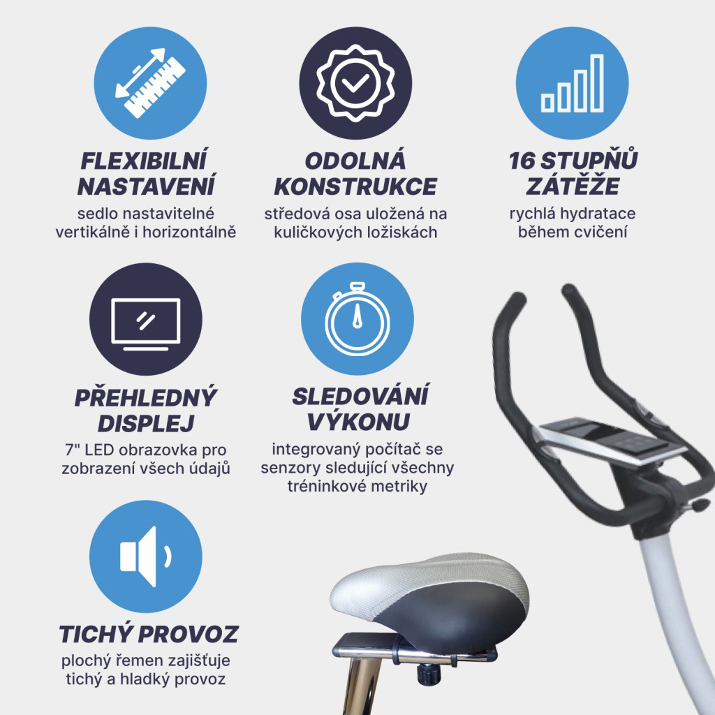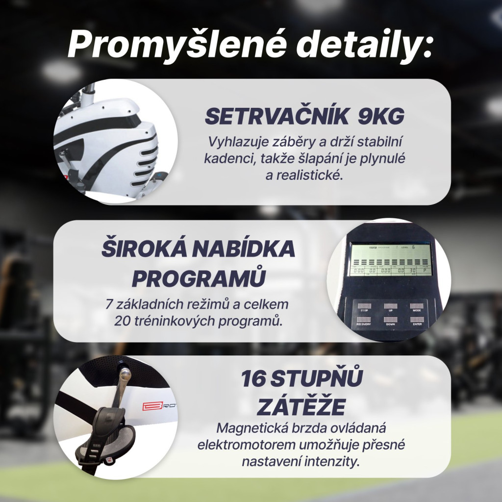 - magnetická brzda ovládaná elektromotorem s nastavením 16 stupňů zátěže