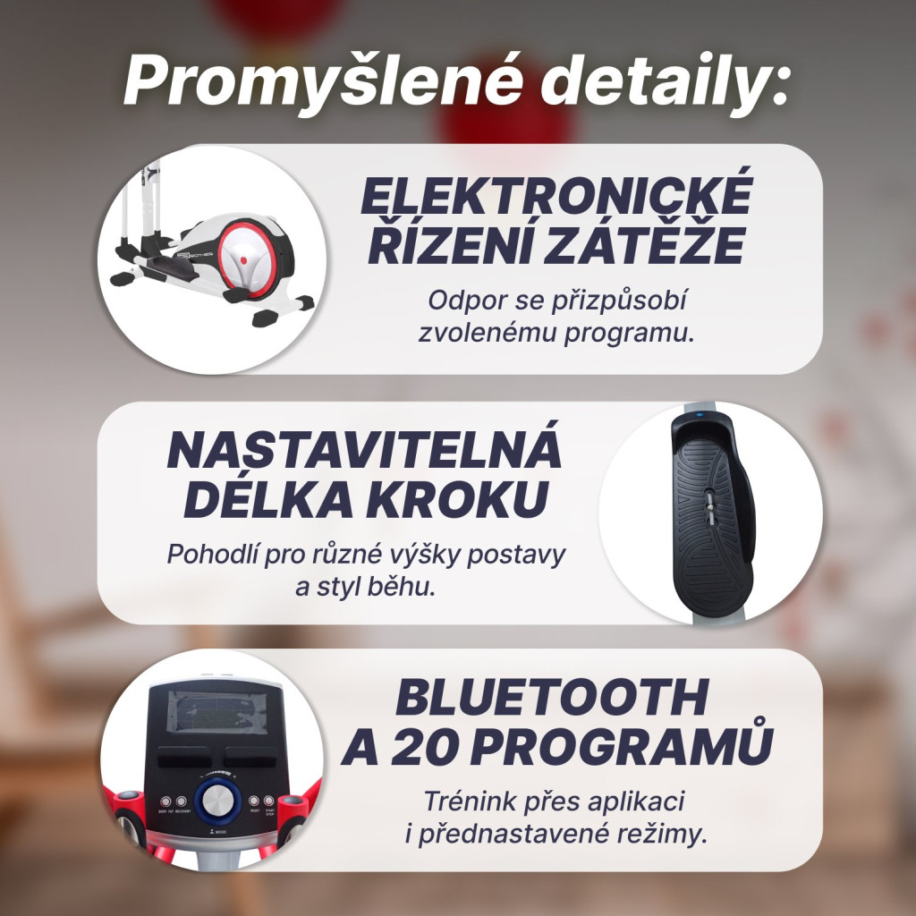 - Elliptical při použití aplikací reaguje na profil tratě přidáváním nebo ubíráním zátěže v závislosti na profilu zobrazované trasy podle reálných map, které si lze libovolně vybírat.