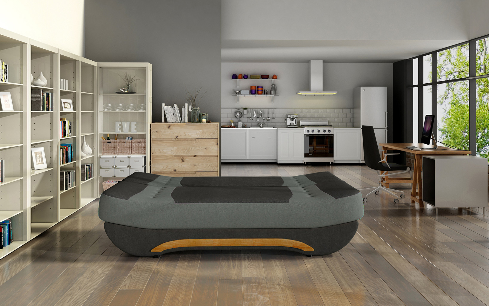 Dotaz na produkt Na splátky ještě dnesEwa II je pohodlná a stylová pohovka o rozměrech 189 x 90 x 88 cm, která poutá pozornost svým originálním designem. Aerodynamický tvar, mírně zaoblené hrany, dřevěná lamela ve spodní části nábytku a také možnost výběru barevné varianty - to vše přispívá k její originalitě. Maximální pohodlí je naopak ovlivněno výplní v podobě bonelu a pěny T25 - obě řešení se starají o správné vyrovnání páteře a zároveň zaručují správnou polohu těla jak při denním používání, tak i při nočním odpočinku - na lůžku o rozměrech 182 x 120 cm. Díky funkci click-clack se náš kus nábytku snadno a rychle rozkládá. Dokonalým vrcholem jeho funkčnosti je prostorný ložní prádlo. Stojí za to mít ve svém bytě pohovku s tak zajímavým tvarem a povrchovou úpravou. Látky: Alova 04, Alova 10