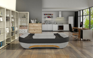 Dotaz na produkt Na splátky ještě dnesEwa II je pohodlná a stylová pohovka o rozměrech 189 x 90 x 88 cm, která poutá pozornost svým originálním designem. Aerodynamický tvar, mírně zaoblené hrany, dřevěná lamela ve spodní části nábytku a také možnost výběru barevné varianty - to vše přispívá k její originalitě. Maximální pohodlí je naopak ovlivněno výplní v podobě bonelu a pěny T25 - obě řešení se starají o správné vyrovnání páteře a zároveň zaručují správnou polohu těla jak při denním používání, tak i při nočním odpočinku - na lůžku o rozměrech 182 x 120 cm. Díky funkci click-clack se náš kus nábytku snadno a rychle rozkládá. Dokonalým vrcholem jeho funkčnosti je prostorný ložní prádlo. Stojí za to mít ve svém bytě pohovku s tak zajímavým tvarem a povrchovou úpravou. Látky: Sawana 21, Soft 11