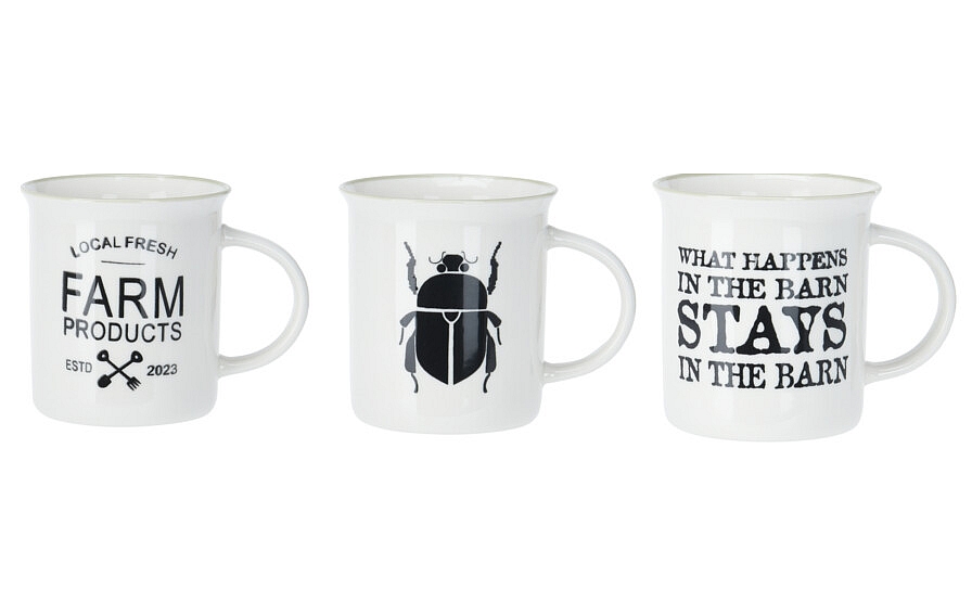 Dotaz na produkt- sada dekorovaných hrnků na kávu i čaj- vyrobené z porcelánu s vnitřní i vnější lesklou glazurou- kvalitní provedení, vhodné do myčky nádobí i do mikrovlnné trouby- rozměry: 11 x 9 cm- objem: 330 ml- sada obsahuje 3 kusy hrnků