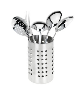 Dotaz na produkt- praktická sada kuchyňského vybavení ve stojanu- nejčastěji používané kuchyňské pomůcky při vaření, máte přehledně v jednom stojanu vždy po ruce- materiál kuchyňského náčiní: nerezová ocel- sada 6 ks obsahuje:- vidlička 32 cm- lžíce 33 cm- děrované lžíce 33 cm- naběračka 28,5 cm- pěnovačka 32 cm- držák na náčiní pr. 10,5 x 18 cm- držák lze použít také jako odkapávač