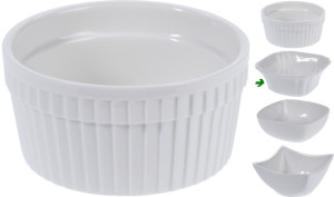 Dotaz na produkt- materiál: bílý porcelán- perfektní pro servírování předkrmů, pochutin, dipů a omáček- rozměry jedné misky cca: 9 x 4,5 cm- žáruvzdorné do 220 °C, lze využít také k zapékání- vhodné do myčky nádobí- sada obsahuje 3 kusy misek