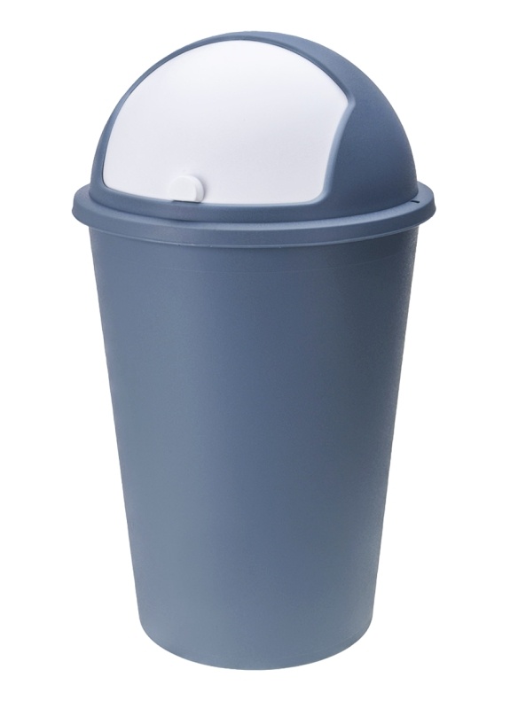 Dotaz na produkt- klasický koš na odpadky v kulatém provedení s výsuvným víkem- materiál: pevný PP plast- sundávací horní víko usnadňuje výměnu i uchycení pytle na odpad- vhodný do jakýchkoliv prostor, do interiéru i exteriéru- výška: 68 cm- velký objem: 50 l- barva: pastelová modrá s bílým víkem