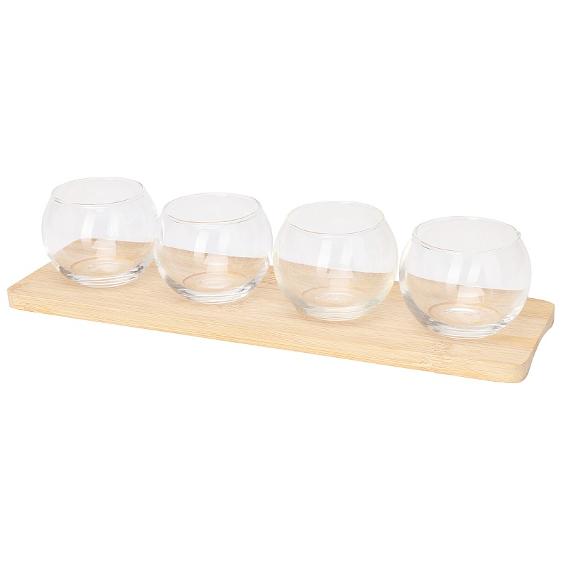 Dotaz na produktServírovací sada 5 ks EXCELLENT – skleněné misky na bambusovém tácku