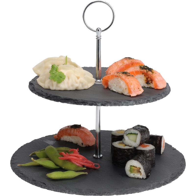 Dotaz na produktServírovací stojan na jídlo 2 patra – břidlicový s chromovanou úchytkou