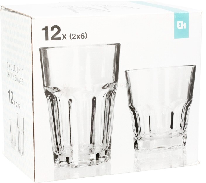 Dotaz na produkt- sada 12 ks sklenic na alko i nealko- vyrobené ze skla- čistě transparentní materiál a dokonalá brilance- sklenice ideální také pro přípravu koktejlů- zesílené dno odolné vůči nárazům- vhodné do myčky na nádobí- sada obsahuje celkem 12 sklenic:- 6 x malá 250 ml / 8,3 x 8,6 cm- 6 x velká 360 ml / 8,3 x 12 cm- značka: Excellent Houseware