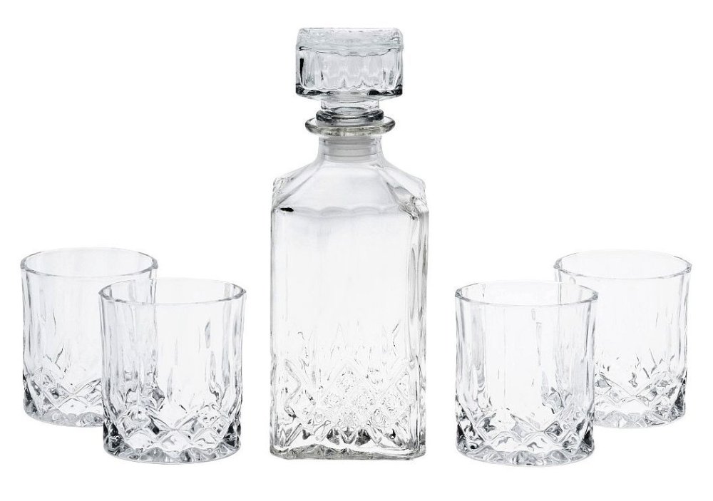 Dotaz na produktStylový set pro servírování whiskey a koktejlů – dekantér a 4 sklenice, 0,9 l