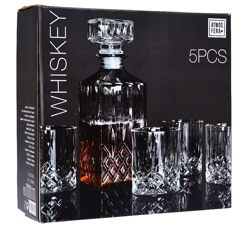 Tento elegantní set na whiskey je ideální volbou pro každého, kdo si chce vychutnat svůj oblíbený nápoj s dávkou stylu. Vyrobený v designu křišťálového skla, který se vyznačuje čistou transparentností a brilancí. Set obsahuje dekantér s praktickou zátkou a těsněním a čtyři skleničky, které jsou ideální nejen pro whiskey, ale i pro přípravu koktejlů, jako je Old Fashioned.