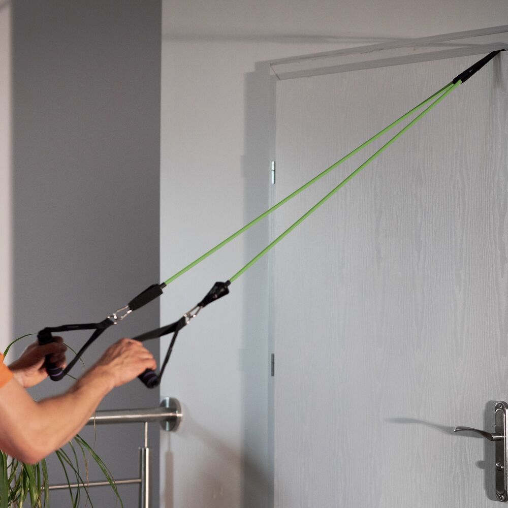 Systém odporových gum umožňuje individuální nastavení zátěže a zapojení různých svalových skupin. Pomocí přiložených komponent lze provádět cviky na ruce, záda, nohy, ramena i střed těla. Ideální řešení pro domácí trénink, fitness i rehabilitaci bez nutnosti velkého vybavení.
