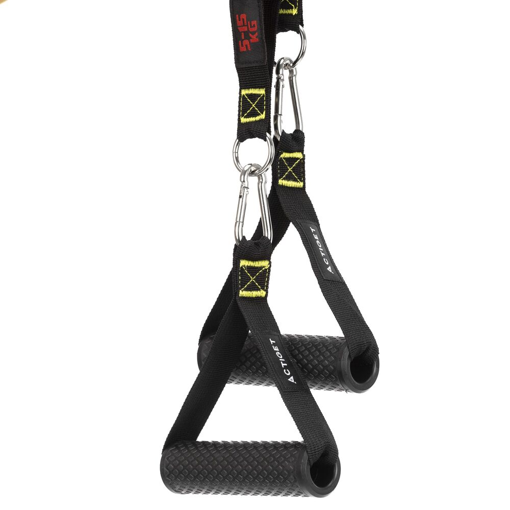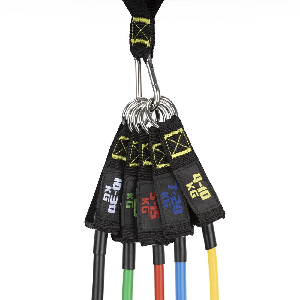 Součástí balení je kompletní příslušenství, včetně rukojetí, popruhů na kotníky, karabin a háku do dveří, které rozšiřují možnosti použití. Praktický vak na uložení usnadňuje přenášení i skladování. Perfektní volba pro každého, kdo chce mít plnohodnotné fitness vybavení vždy po ruce.