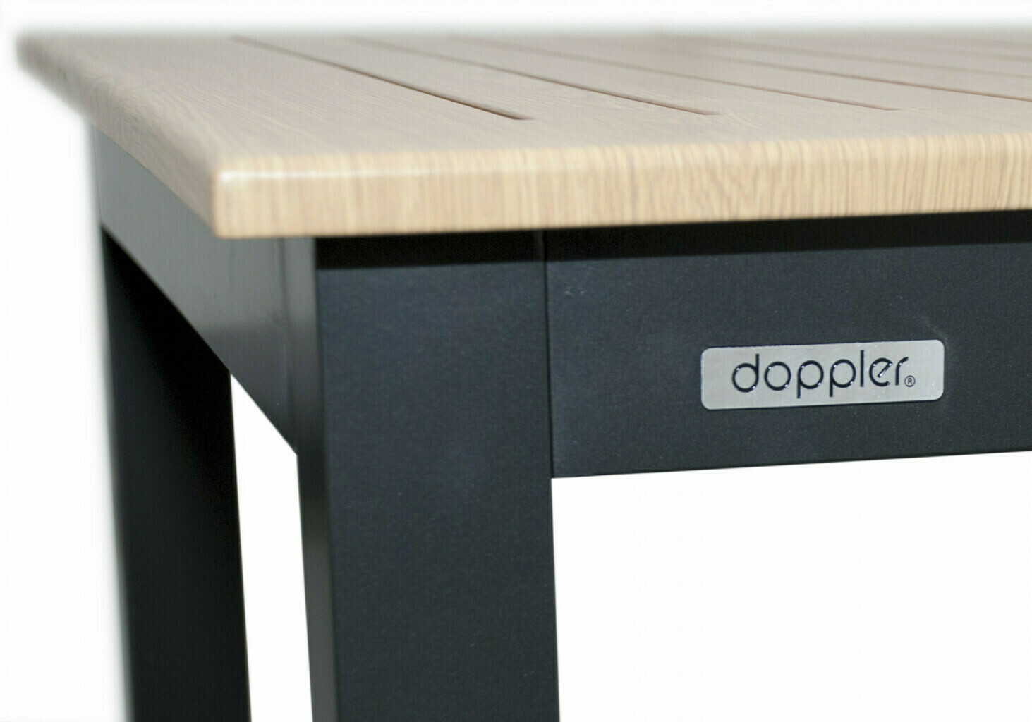 Elegantní a praktický stůl EXPERT WOOD antracit nabízí skvělé řešení pro všechny, kdo hledají kompromis mezi funkčností hliníku a estetikou dřeva. Stůl má stabilní celohliníkovou konstrukci v antracitové barvě, žebrovaná hliníková deska stolu má práškový nástřik v dekoru dřeva. Výška stolu je 110 cm. Díky použitým materiálům je stůl lehký, bezúdržbový a odolný povětrnostním vlivům. Tím se stává zahradním nábytkem s dlouhou životností.