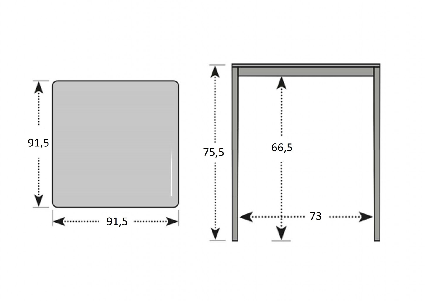 rozměry: 91,5 x 91,5 x 75,5 cm (šířka x hloubka x výška)
