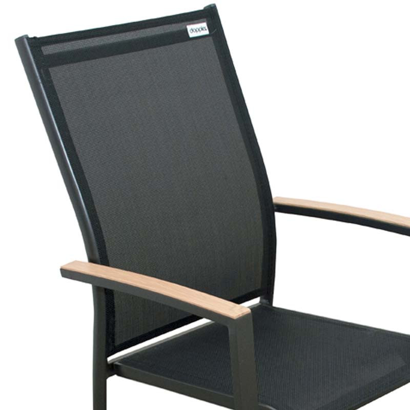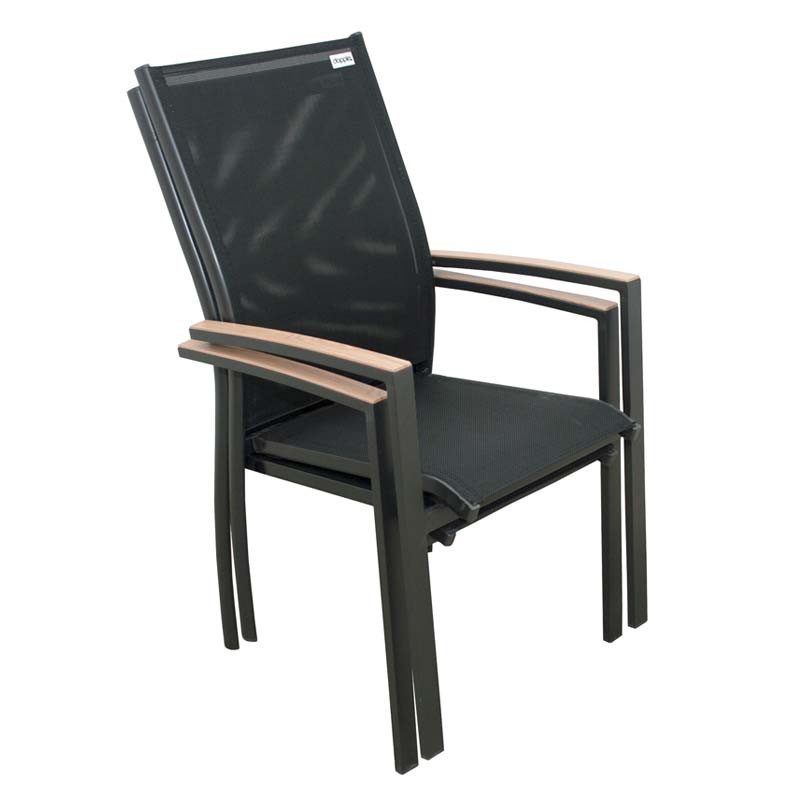 Stohovatelné zahradní křeslo EXPERT WOOD ANTRACIT je vyrobeno z bezúdržbových materiálů. Stabilní hliníková konstrukce v antracitové barvě je doplněna výpletem z kvalitní umělé textilie v barvě antracit. Vše doplňují hliníkové područky s práškovým nástřikem v tónu dřeva.