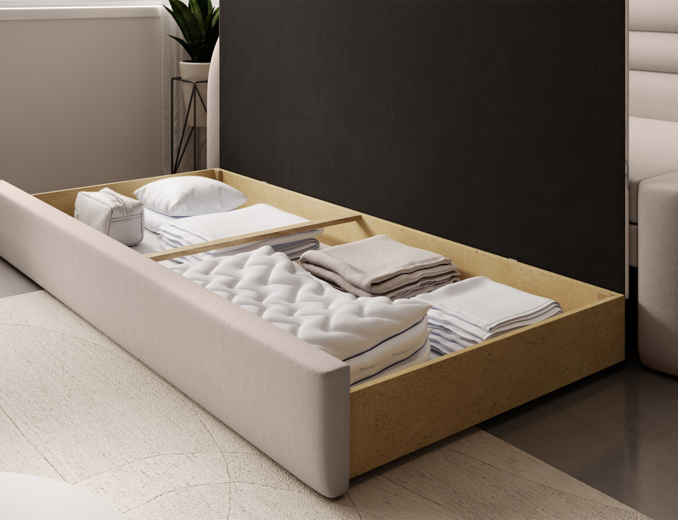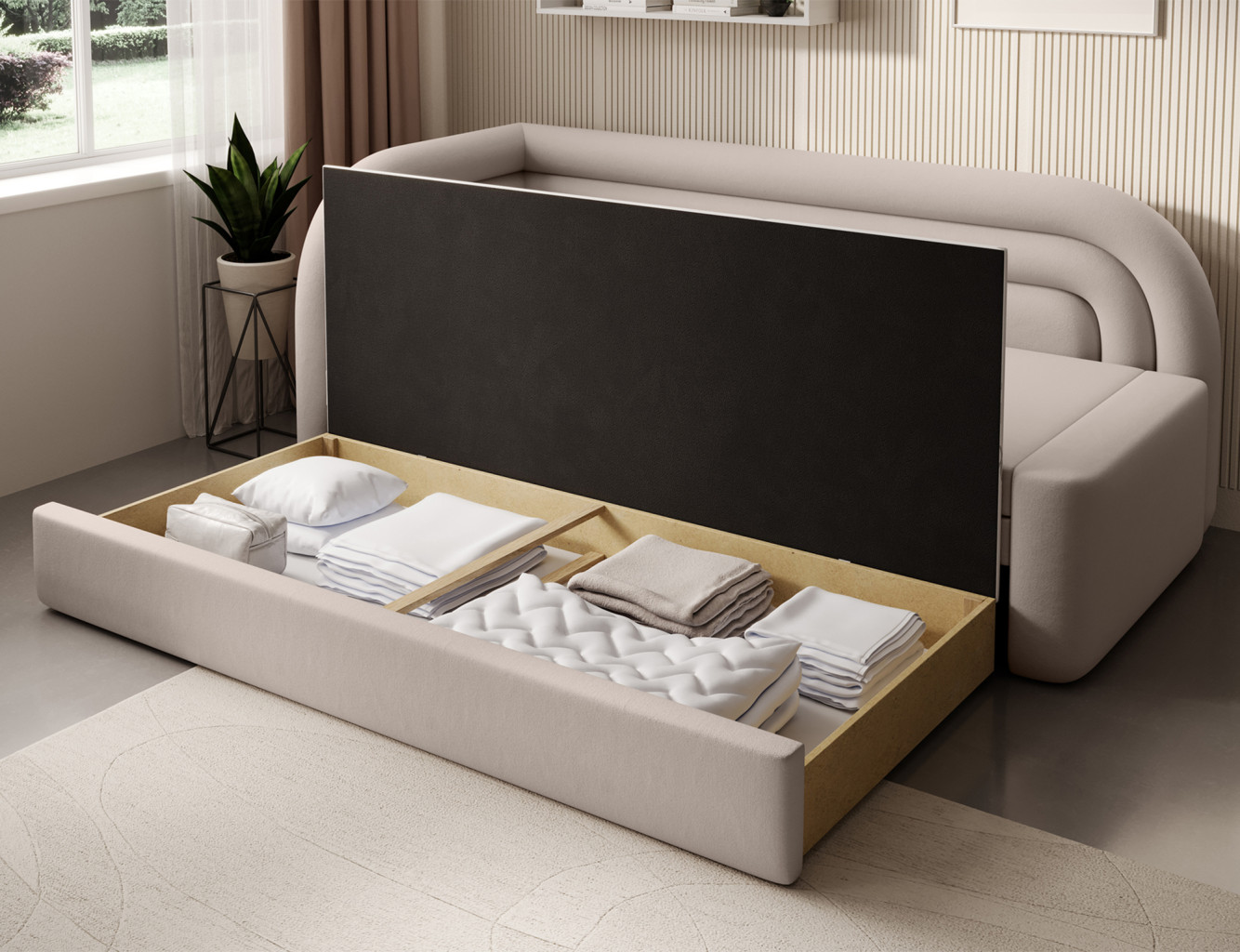 Dotaz na produkt Na splátky ještě dnesPohovka Fabillo je elegantní a funkční kus nábytku, který se dokonale hodí do moderních, minimalistických a japonských interiérů. Díky možnosti levé nebo pravé verze se Fabillo snadno přizpůsobí různým dispozicím místností. Vyrobena z vysoce kvalitních látek, je odolná a pohodlná a poskytuje posezení až pro tři osoby. Široká škála dostupných látek umožňuje personalizovaný vzhled, který odpovídá individuálním preferencím. Fabillo navíc disponuje funkcí spaní, takže je ideálním řešením pro hosty nebo jako přistýlka v obývacím pokoji. Mechanismus rozkládání je jednoduchý a intuitivní a plocha na spaní je rovná a pohodlná, což zajišťuje klidný spánek. Pohovka Fabillo vyniká svými trendy zaoblenými hranami, které jí dodávají elegantní a moderní vzhled. Měkké linie a zaoblené tvary ji činí nejen funkční, ale i mimořádně estetickou. Fabillo je vhodný do různých domácích prostor, jako je pokoj pro hosty, pokoj pro teenagery nebo obývací pokoj, což z něj činí všestranné řešení pro mnoho použití.Látky: Sola 18