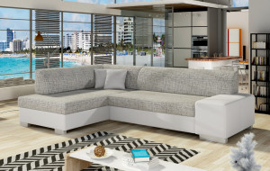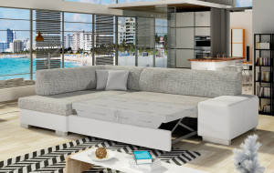 Dotaz na produkt Na splátky ještě dnesFabio je stylová, multifunkční rohová pohovka se stabilní konstrukcí ve tvaru L, která vám bude sloužit po mnoho let. S rozměry 268 x 167 x 73 cm zaručuje maximální pohodlí pro denní relaxaci. Díky rozkládacímu mechanismu typu delfín je pohovka Fabio ideální i pro noční odpočinek. Plocha na spaní o rozměrech 195 x 125 cm zajišťuje dlouhý a klidný spánek. Dalším prvkem tohoto modelu je prostorný prostor na ložní prádlo. Sedák je vyroben z vysoce pružné pěny s vlnitými pružinami, které dohromady poskytují vynikající oporu tělu a zároveň zabraňují nevzhledným promáčklinám a deformacím. Při výběru rohové pohovky Fabio je třeba věnovat pozornost jejímu geometrickému designu inspirovanému New Yorkem, dekorativním polštářům, které jsou součástí sady, a široké škále dostupných barevných možností čalounění. Fabio je kompaktní a praktický kus nábytku, ideální do každého obytného prostoru.Látky: Berlin 01, Soft 17