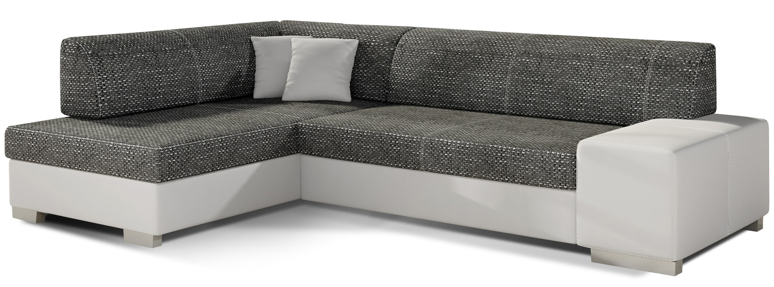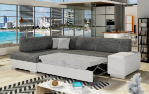 Dotaz na produkt Na splátky ještě dnesFabio je stylová, multifunkční rohová pohovka se stabilní konstrukcí ve tvaru L, která vám bude sloužit po mnoho let. S rozměry 268 x 167 x 73 cm zaručuje maximální pohodlí pro denní relaxaci. Díky rozkládacímu mechanismu typu delfín je pohovka Fabio ideální i pro noční odpočinek. Plocha na spaní o rozměrech 195 x 125 cm zajišťuje dlouhý a klidný spánek. Dalším prvkem tohoto modelu je prostorný prostor na ložní prádlo. Sedák je vyroben z vysoce pružné pěny s vlnitými pružinami, které dohromady poskytují vynikající oporu tělu a zároveň zabraňují nevzhledným promáčklinám a deformacím. Při výběru rohové pohovky Fabio je třeba věnovat pozornost jejímu geometrickému designu inspirovanému New Yorkem, dekorativním polštářům, které jsou součástí sady, a široké škále dostupných barevných možností čalounění. Fabio je kompaktní a praktický kus nábytku, ideální do každého obytného prostoru.Látky: Berlin 02, Soft 17