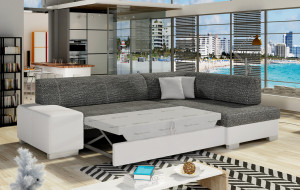 Dotaz na produkt Na splátky ještě dnesFabio je stylová, multifunkční rohová pohovka se stabilní konstrukcí ve tvaru L, která vám bude sloužit po mnoho let. S rozměry 268 x 167 x 73 cm zaručuje maximální pohodlí pro denní relaxaci. Díky rozkládacímu mechanismu typu delfín je pohovka Fabio ideální i pro noční odpočinek. Plocha na spaní o rozměrech 195 x 125 cm zajišťuje dlouhý a klidný spánek. Dalším prvkem tohoto modelu je prostorný prostor na ložní prádlo. Sedák je vyroben z vysoce pružné pěny s vlnitými pružinami, které dohromady poskytují vynikající oporu tělu a zároveň zabraňují nevzhledným promáčklinám a deformacím. Při výběru rohové pohovky Fabio je třeba věnovat pozornost jejímu geometrickému designu inspirovanému New Yorkem, dekorativním polštářům, které jsou součástí sady, a široké škále dostupných barevných možností čalounění. Fabio je kompaktní a praktický kus nábytku, ideální do každého obytného prostoru.Látky: Berlin 02, Soft 17