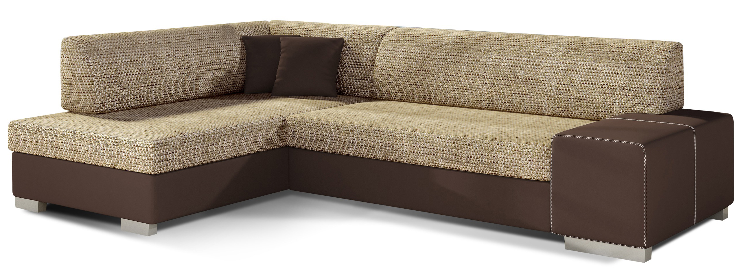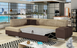 Dotaz na produkt Na splátky ještě dnesFabio je stylová, multifunkční rohová pohovka se stabilní konstrukcí ve tvaru L, která vám bude sloužit po mnoho let. S rozměry 268 x 167 x 73 cm zaručuje maximální pohodlí pro denní relaxaci. Díky rozkládacímu mechanismu typu delfín je pohovka Fabio ideální i pro noční odpočinek. Plocha na spaní o rozměrech 195 x 125 cm zajišťuje dlouhý a klidný spánek. Dalším prvkem tohoto modelu je prostorný prostor na ložní prádlo. Sedák je vyroben z vysoce pružné pěny s vlnitými pružinami, které dohromady poskytují vynikající oporu tělu a zároveň zabraňují nevzhledným promáčklinám a deformacím. Při výběru rohové pohovky Fabio je třeba věnovat pozornost jejímu geometrickému designu inspirovanému New Yorkem, dekorativním polštářům, které jsou součástí sady, a široké škále dostupných barevných možností čalounění. Fabio je kompaktní a praktický kus nábytku, ideální do každého obytného prostoru.Látky: Berlin 03, Soft 66