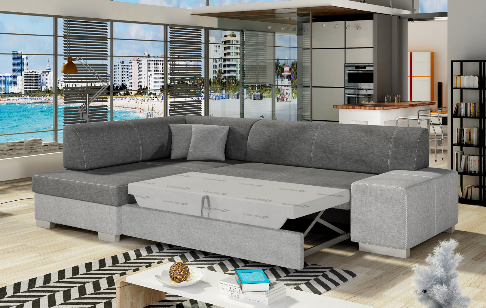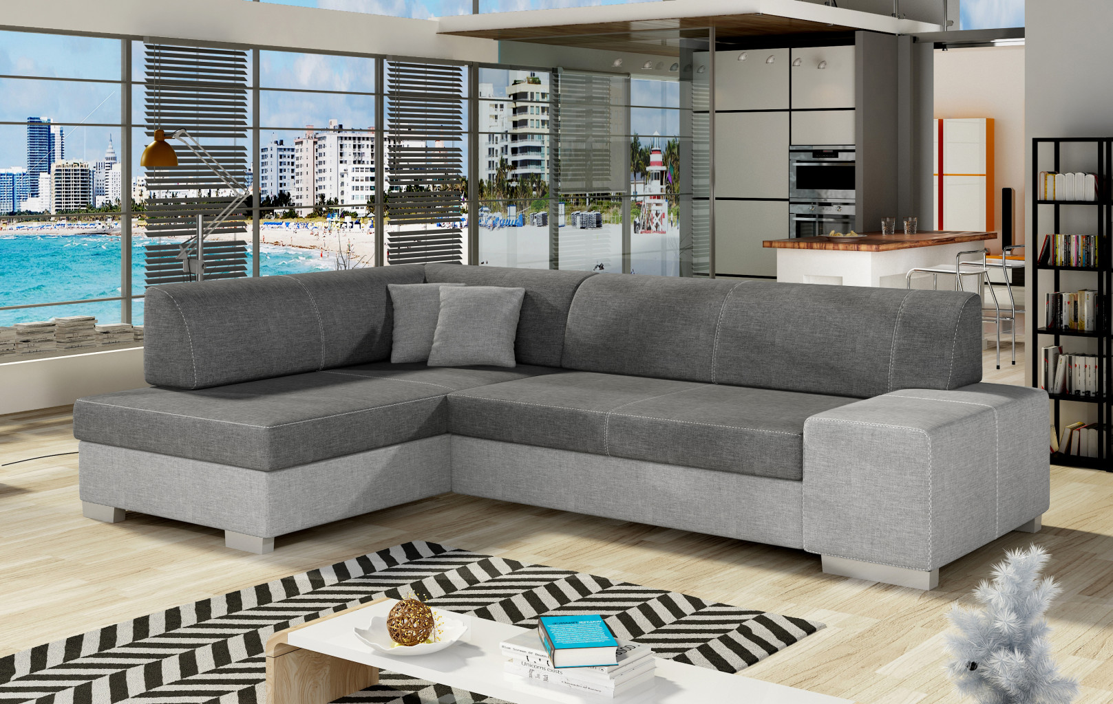 Dotaz na produkt Na splátky ještě dnesFabio je stylová, multifunkční rohová pohovka se stabilní konstrukcí ve tvaru L, která vám bude sloužit po mnoho let. S rozměry 268 x 167 x 73 cm zaručuje maximální pohodlí pro denní relaxaci. Díky rozkládacímu mechanismu typu delfín je pohovka Fabio ideální i pro noční odpočinek. Plocha na spaní o rozměrech 195 x 125 cm zajišťuje dlouhý a klidný spánek. Dalším prvkem tohoto modelu je prostorný prostor na ložní prádlo. Sedák je vyroben z vysoce pružné pěny s vlnitými pružinami, které dohromady poskytují vynikající oporu tělu a zároveň zabraňují nevzhledným promáčklinám a deformacím. Při výběru rohové pohovky Fabio je třeba věnovat pozornost jejímu geometrickému designu inspirovanému New Yorkem, dekorativním polštářům, které jsou součástí sady, a široké škále dostupných barevných možností čalounění. Fabio je kompaktní a praktický kus nábytku, ideální do každého obytného prostoru.Látky: Sawana 05, Sawana 21
