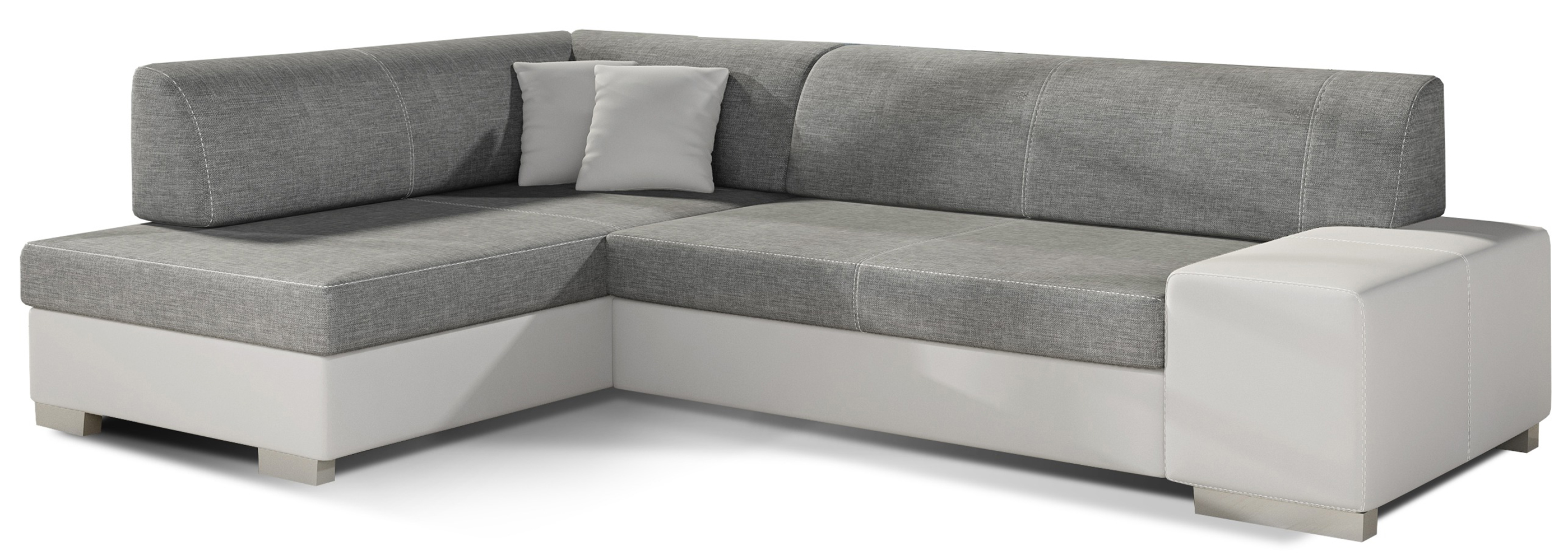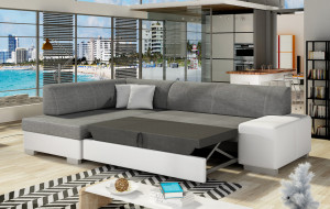 Dotaz na produkt Na splátky ještě dnesFabio je stylová, multifunkční rohová pohovka se stabilní konstrukcí ve tvaru L, která vám bude sloužit po mnoho let. S rozměry 268 x 167 x 73 cm zaručuje maximální pohodlí pro denní relaxaci. Díky rozkládacímu mechanismu typu delfín je pohovka Fabio ideální i pro noční odpočinek. Plocha na spaní o rozměrech 195 x 125 cm zajišťuje dlouhý a klidný spánek. Dalším prvkem tohoto modelu je prostorný prostor na ložní prádlo. Sedák je vyroben z vysoce pružné pěny s vlnitými pružinami, které dohromady poskytují vynikající oporu tělu a zároveň zabraňují nevzhledným promáčklinám a deformacím. Při výběru rohové pohovky Fabio je třeba věnovat pozornost jejímu geometrickému designu inspirovanému New Yorkem, dekorativním polštářům, které jsou součástí sady, a široké škále dostupných barevných možností čalounění. Fabio je kompaktní a praktický kus nábytku, ideální do každého obytného prostoru.Látky: Sawana 05, Soft 17