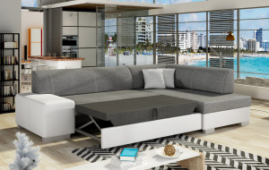 Dotaz na produkt Na splátky ještě dnesFabio je stylová, multifunkční rohová pohovka se stabilní konstrukcí ve tvaru L, která vám bude sloužit po mnoho let. S rozměry 268 x 167 x 73 cm zaručuje maximální pohodlí pro denní relaxaci. Díky rozkládacímu mechanismu typu delfín je pohovka Fabio ideální i pro noční odpočinek. Plocha na spaní o rozměrech 195 x 125 cm zajišťuje dlouhý a klidný spánek. Dalším prvkem tohoto modelu je prostorný prostor na ložní prádlo. Sedák je vyroben z vysoce pružné pěny s vlnitými pružinami, které dohromady poskytují vynikající oporu tělu a zároveň zabraňují nevzhledným promáčklinám a deformacím. Při výběru rohové pohovky Fabio je třeba věnovat pozornost jejímu geometrickému designu inspirovanému New Yorkem, dekorativním polštářům, které jsou součástí sady, a široké škále dostupných barevných možností čalounění. Fabio je kompaktní a praktický kus nábytku, ideální do každého obytného prostoru.Látky: Sawana 05, Soft 17