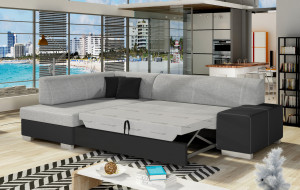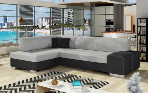 Dotaz na produkt Na splátky ještě dnesFabio je stylová, multifunkční rohová pohovka se stabilní konstrukcí ve tvaru L, která vám bude sloužit po mnoho let. S rozměry 268 x 167 x 73 cm zaručuje maximální pohodlí pro denní relaxaci. Díky rozkládacímu mechanismu typu delfín je pohovka Fabio ideální i pro noční odpočinek. Plocha na spaní o rozměrech 195 x 125 cm zajišťuje dlouhý a klidný spánek. Dalším prvkem tohoto modelu je prostorný prostor na ložní prádlo. Sedák je vyroben z vysoce pružné pěny s vlnitými pružinami, které dohromady poskytují vynikající oporu tělu a zároveň zabraňují nevzhledným promáčklinám a deformacím. Při výběru rohové pohovky Fabio je třeba věnovat pozornost jejímu geometrickému designu inspirovanému New Yorkem, dekorativním polštářům, které jsou součástí sady, a široké škále dostupných barevných možností čalounění. Fabio je kompaktní a praktický kus nábytku, ideální do každého obytného prostoru.Látky: Sawana 21, Soft 11