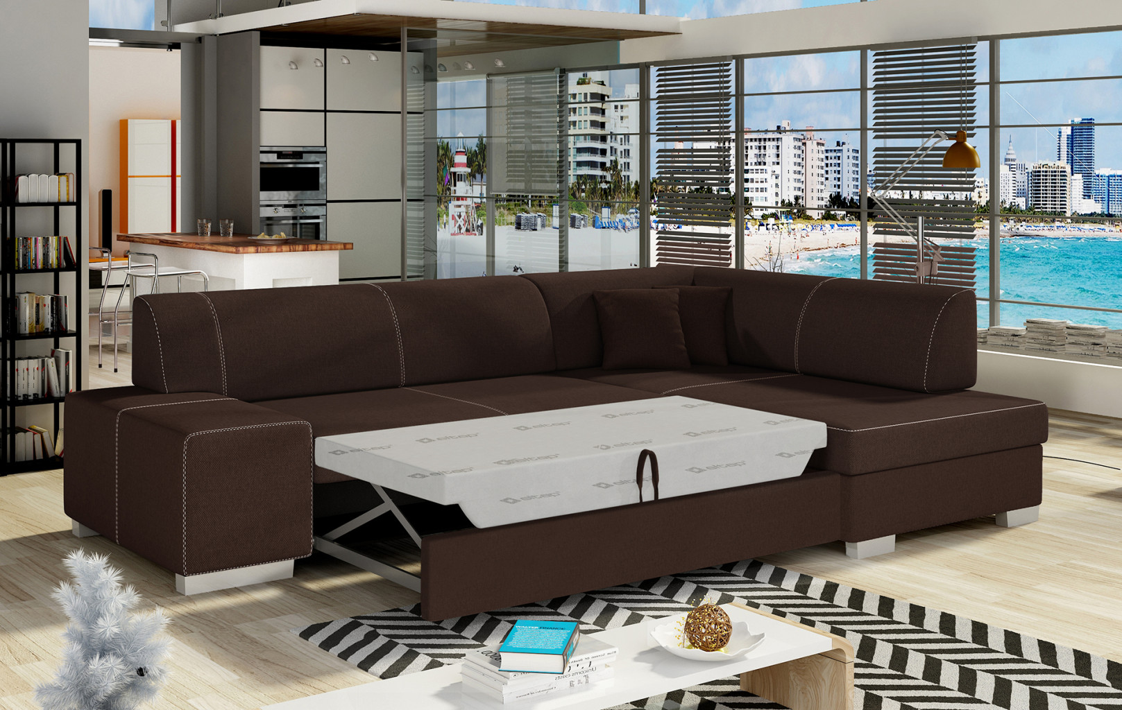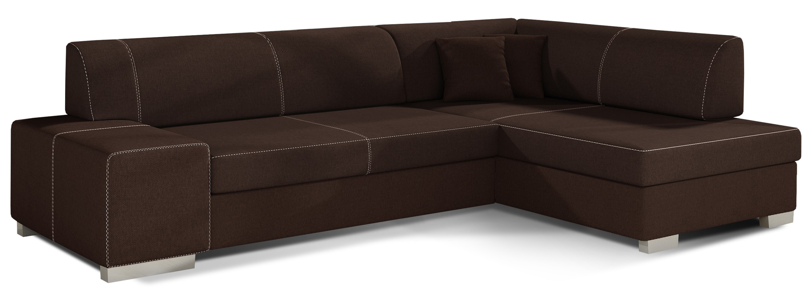 Dotaz na produkt Na splátky ještě dnesFabio je stylová, multifunkční rohová pohovka se stabilní konstrukcí ve tvaru L, která vám bude sloužit po mnoho let. S rozměry 268 x 167 x 73 cm zaručuje maximální pohodlí pro denní relaxaci. Díky rozkládacímu mechanismu typu delfín je pohovka Fabio ideální i pro noční odpočinek. Plocha na spaní o rozměrech 195 x 125 cm zajišťuje dlouhý a klidný spánek. Dalším prvkem tohoto modelu je prostorný prostor na ložní prádlo. Sedák je vyroben z vysoce pružné pěny s vlnitými pružinami, které dohromady poskytují vynikající oporu tělu a zároveň zabraňují nevzhledným promáčklinám a deformacím. Při výběru rohové pohovky Fabio je třeba věnovat pozornost jejímu geometrickému designu inspirovanému New Yorkem, dekorativním polštářům, které jsou součástí sady, a široké škále dostupných barevných možností čalounění. Fabio je kompaktní a praktický kus nábytku, ideální do každého obytného prostoru.Látky: Sawana 26