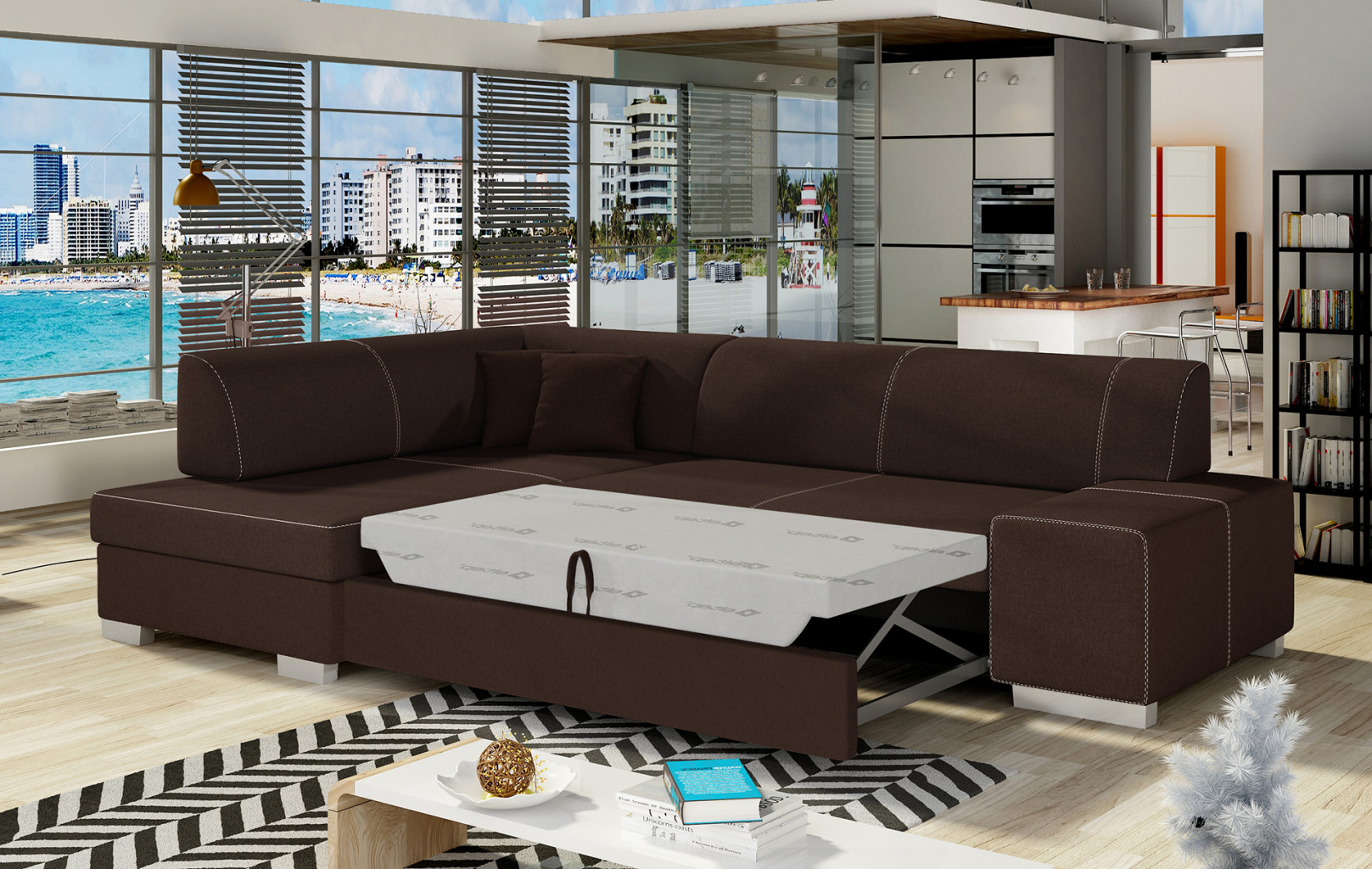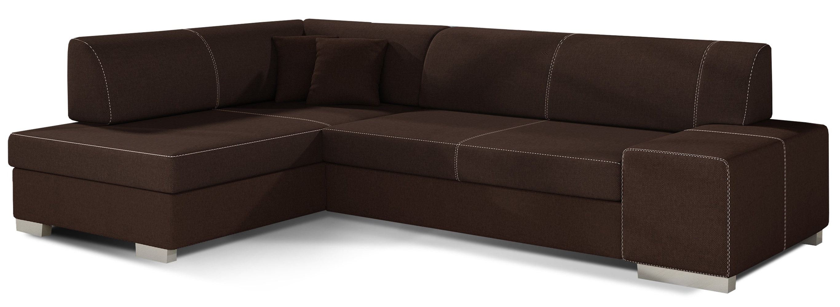 Dotaz na produkt Na splátky ještě dnesFabio je stylová, multifunkční rohová pohovka se stabilní konstrukcí ve tvaru L, která vám bude sloužit po mnoho let. S rozměry 268 x 167 x 73 cm zaručuje maximální pohodlí pro denní relaxaci. Díky rozkládacímu mechanismu typu delfín je pohovka Fabio ideální i pro noční odpočinek. Plocha na spaní o rozměrech 195 x 125 cm zajišťuje dlouhý a klidný spánek. Dalším prvkem tohoto modelu je prostorný prostor na ložní prádlo. Sedák je vyroben z vysoce pružné pěny s vlnitými pružinami, které dohromady poskytují vynikající oporu tělu a zároveň zabraňují nevzhledným promáčklinám a deformacím. Při výběru rohové pohovky Fabio je třeba věnovat pozornost jejímu geometrickému designu inspirovanému New Yorkem, dekorativním polštářům, které jsou součástí sady, a široké škále dostupných barevných možností čalounění. Fabio je kompaktní a praktický kus nábytku, ideální do každého obytného prostoru.Látky: Sawana 26